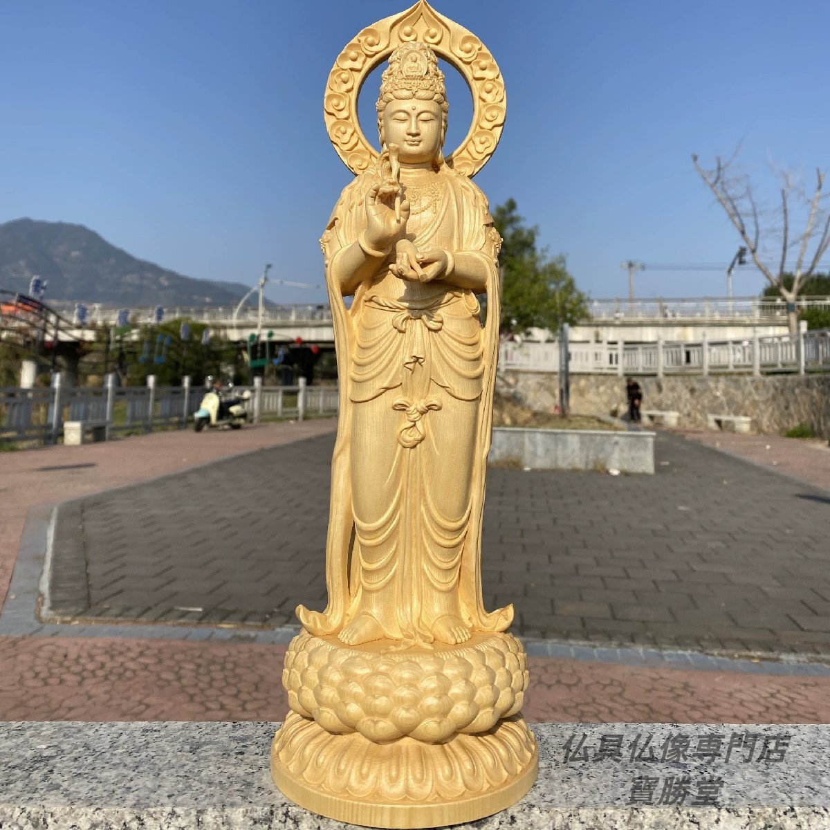 - 浄瓶観音菩薩 木彫 仏像 精密彫刻 高さ36cm【送料無料】【仏具仏像専門店寶勝堂】