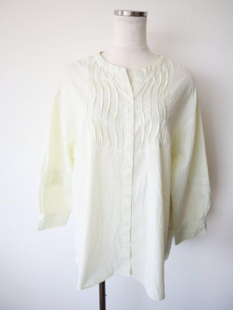 - 送料込★2025年製 INDIVI インディヴィ タックデザインブラウス XLサイズ 記載サイズ13 イエロー×ホワイト ストライプ柄 綿100% s6455349