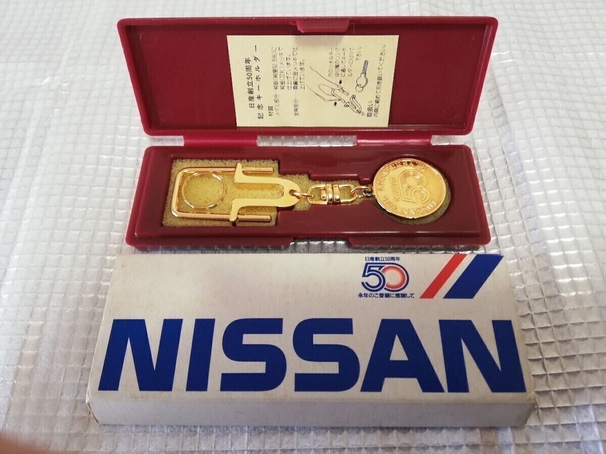 > 純銀 22K 純金メッキ★新品 未使用 日産 NISSAN 50周年 記念 純正品 非売品 ノベルティ キーホルダー GT-R GTR スカイライン フェアレディZ