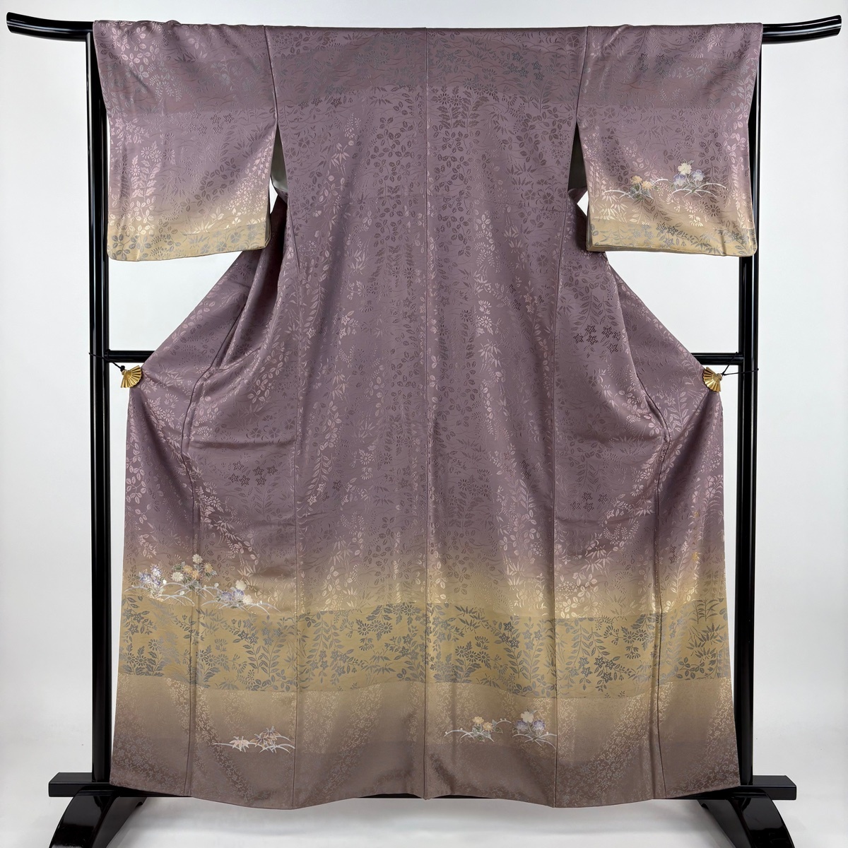 - 訪問着 身丈159.5cm 裄丈66.5cm M 袷 落款 秋草 露芝 金糸 刺繍 紫 正絹 美品 名品 【中古】