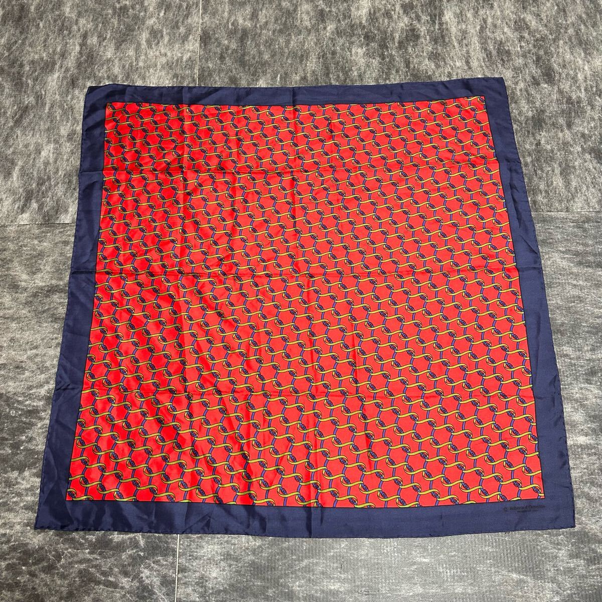 - Roberta di Camerino ロベルタ・ディ・カメリーノ スカーフ 大判ハンカチ リボン 総柄 レッド ネイビー *75