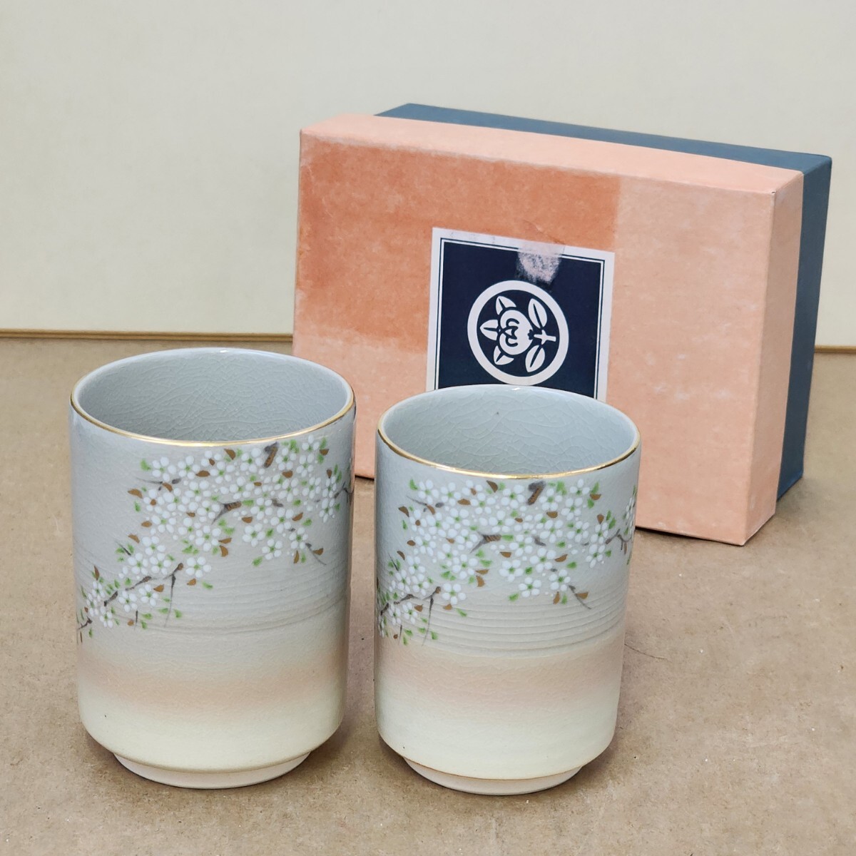 - たち吉 花の舞 夫婦湯呑 未使用箱入 /茶器/組湯飲み/食器/陶磁器/橘吉/