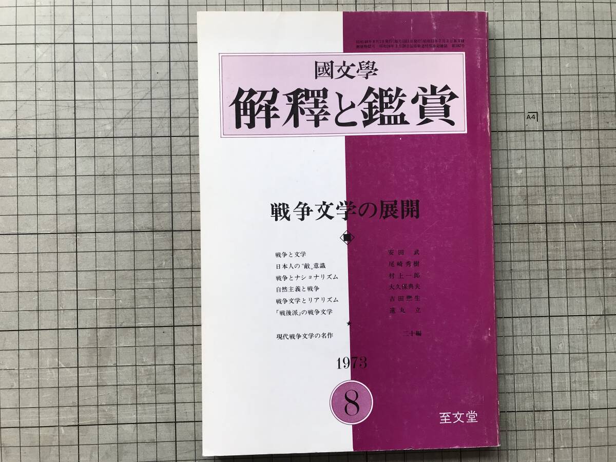 > 『国文学 解釈と鑑賞 第485号 第38巻11号 戦争文学の展開』尾崎秀樹・村上一郎・久保田淳・柘植光彦・水谷昭夫 他 至文堂 1973年刊 11496