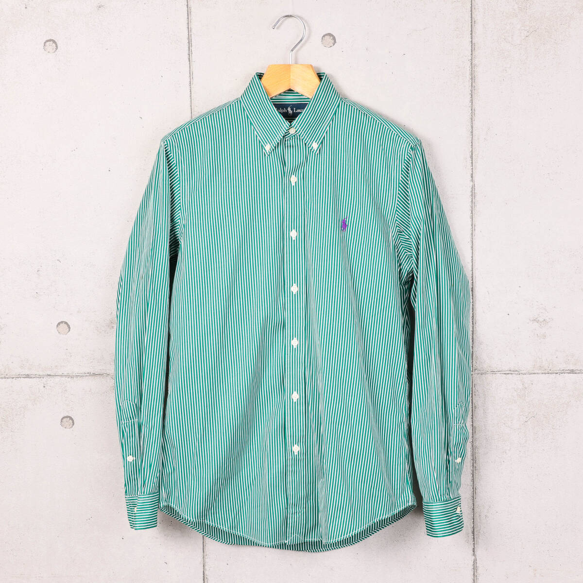 - Poloラルフローレン◆ストライプ ボタンダウンシャツ◆グリーン×ホワイト◆サイズS