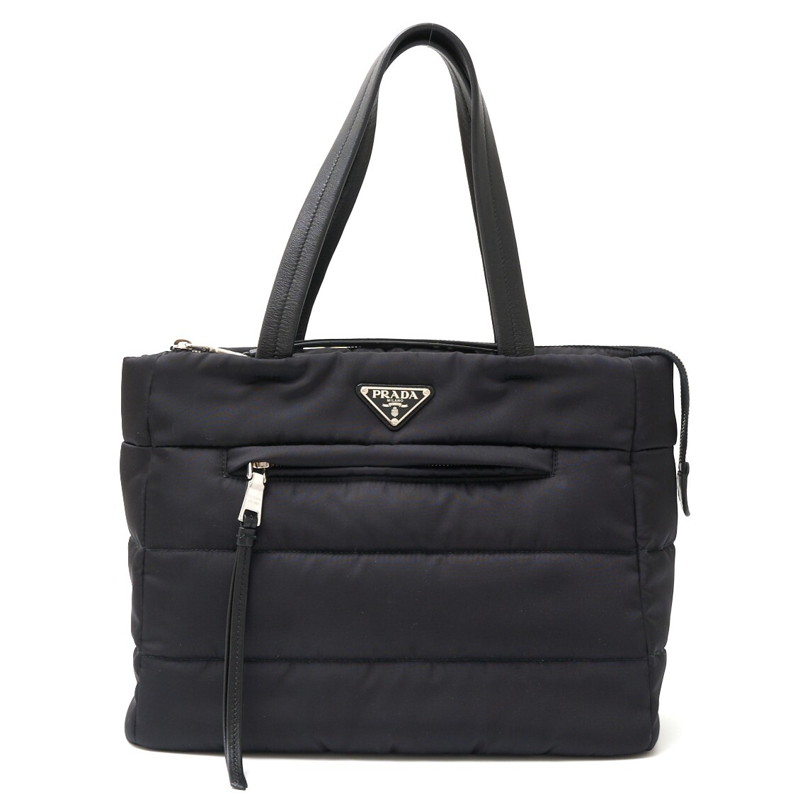 - PRADA プラダ テスートボンバー バッグ 1BG056 トート ハンドBAG ナイロン×レザー ブラック×シルバー金具 三角ロゴプレート レディース