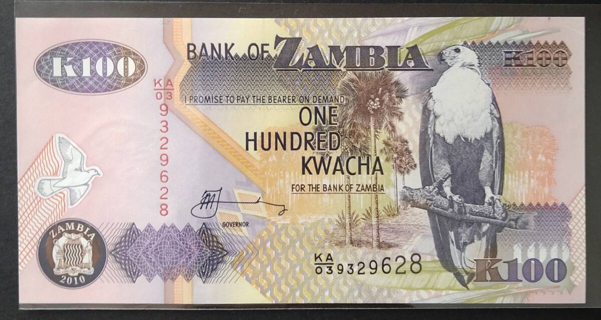 - ザンビア・100クワチャ紙幣(1枚)【中古】