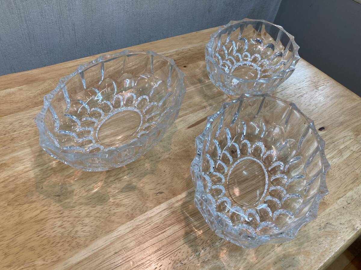- おしゃれ 昭和レトロ 透明なガラスの皿3個セット