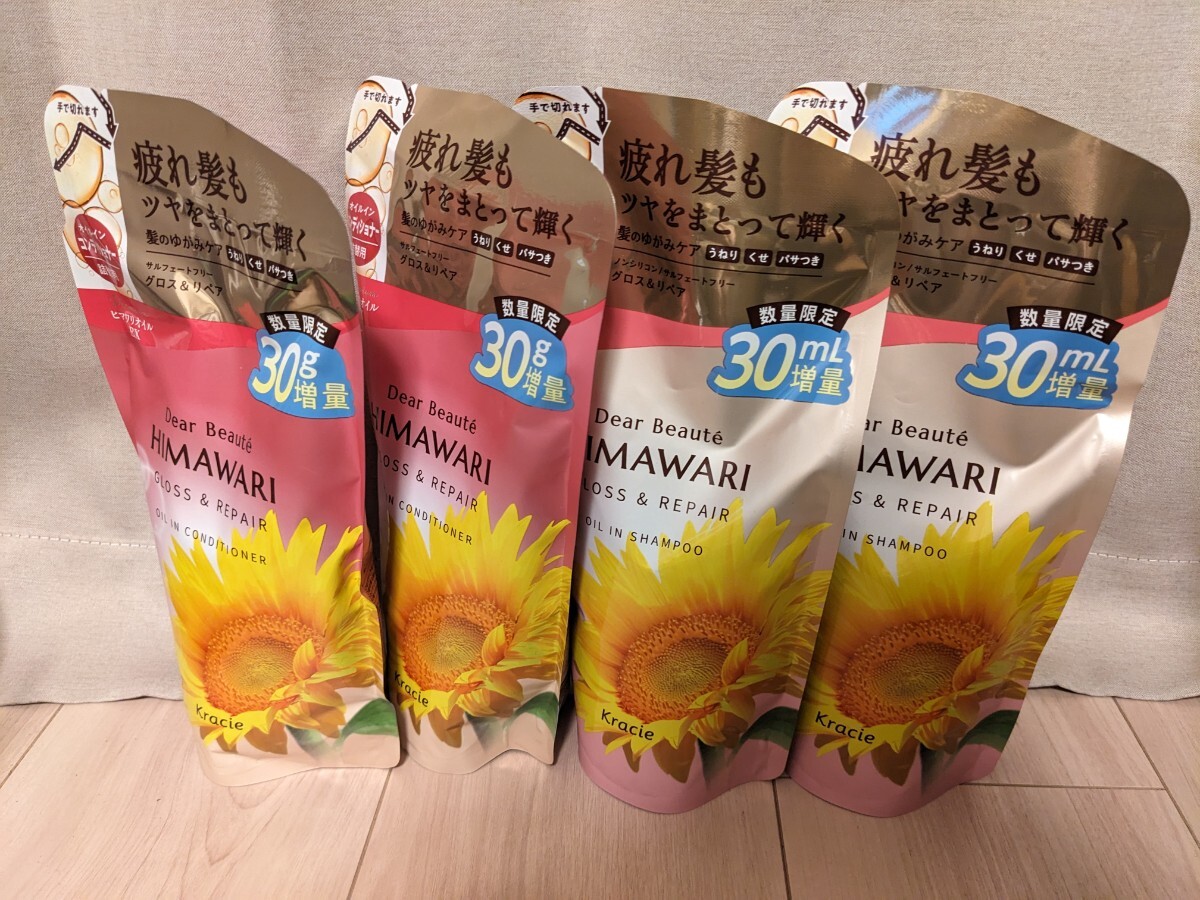 - 増量タイプ【4袋セット】HIMAWARIのちから オイルインシャンプー オイルインコンディショナー グロス&リペア