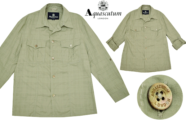 > Y-9008★送料無料★Aquascutum LONDON アクアスキュータム ロンドン★日本製 カーキグリーン 薄地 2WAY 5分-7分袖にもなる 長袖 シャツ L