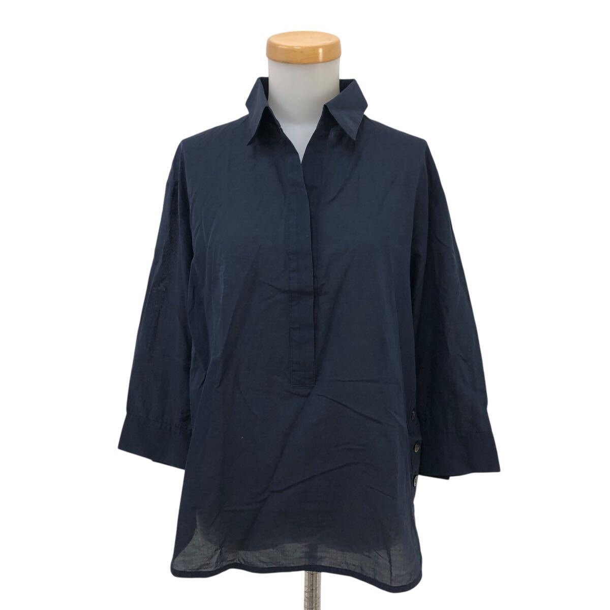 - Nm314-5 TRANS WORK トランスワーク MANTECO イタリア製生地 コットン 綿100% 七分袖 シャツ ブラウス トップス ネイビー 紺 レディース 38