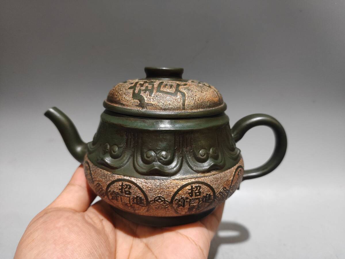 - 蔵友旧蔵出 紫砂壺 招財進寶壺 顧景舟款 蘇門答臘青 箱付 茶道品 煎茶道具 文房賞物 希少珍品 中国古玩 中国古美術品