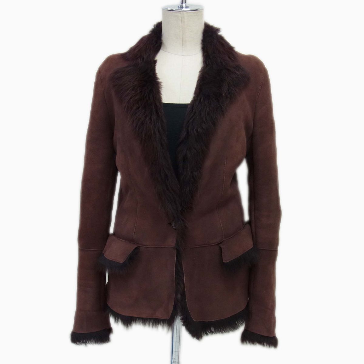> 定価40万 羊革◇GUCCI グッチ ムートンレザー ジャケット ダークブラウン 裏ラムファー グッチ レディース イタリア製