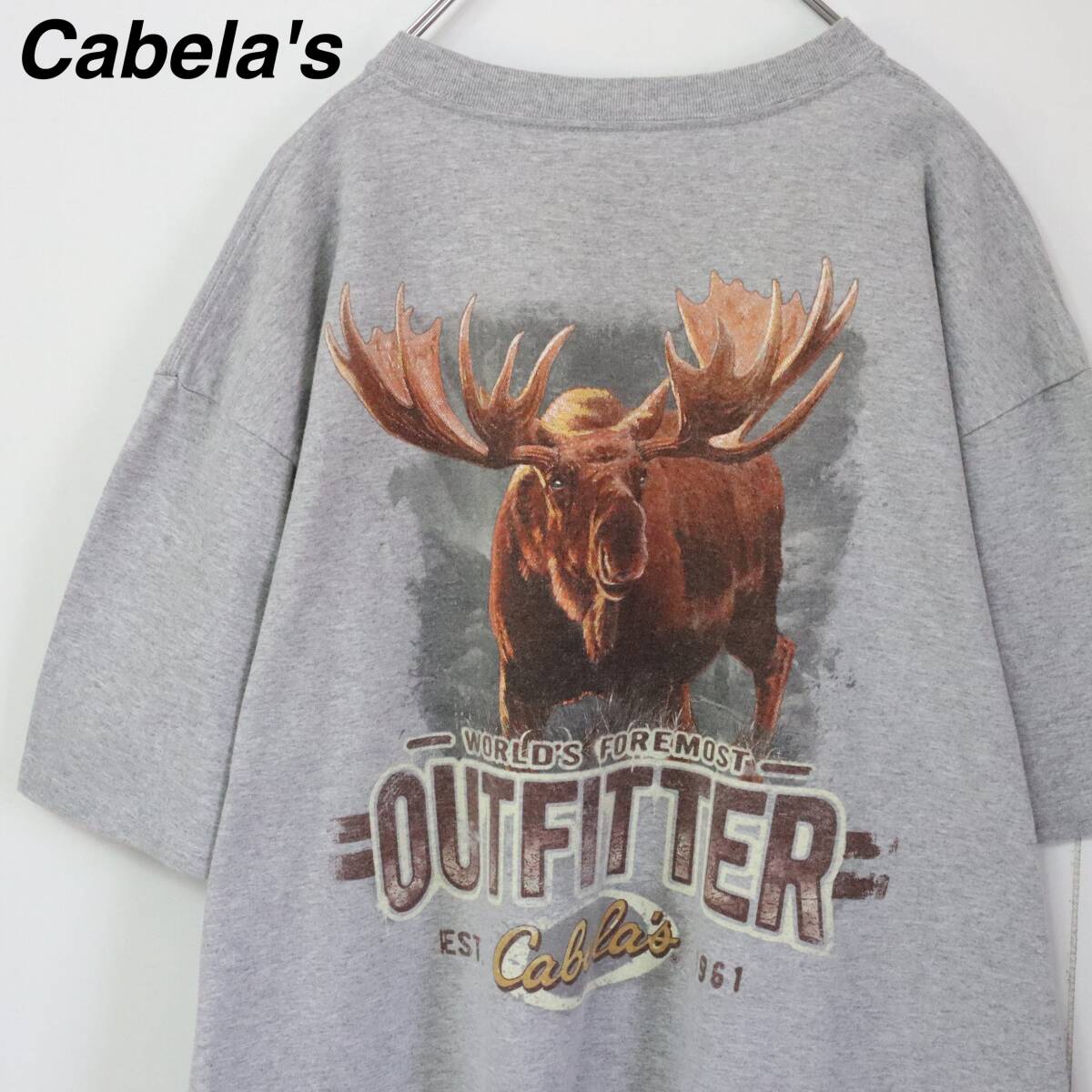- 【ヘラジカ】カベラス Tシャツ アニマルプリント 鹿 動物 XLサイズ グレイ