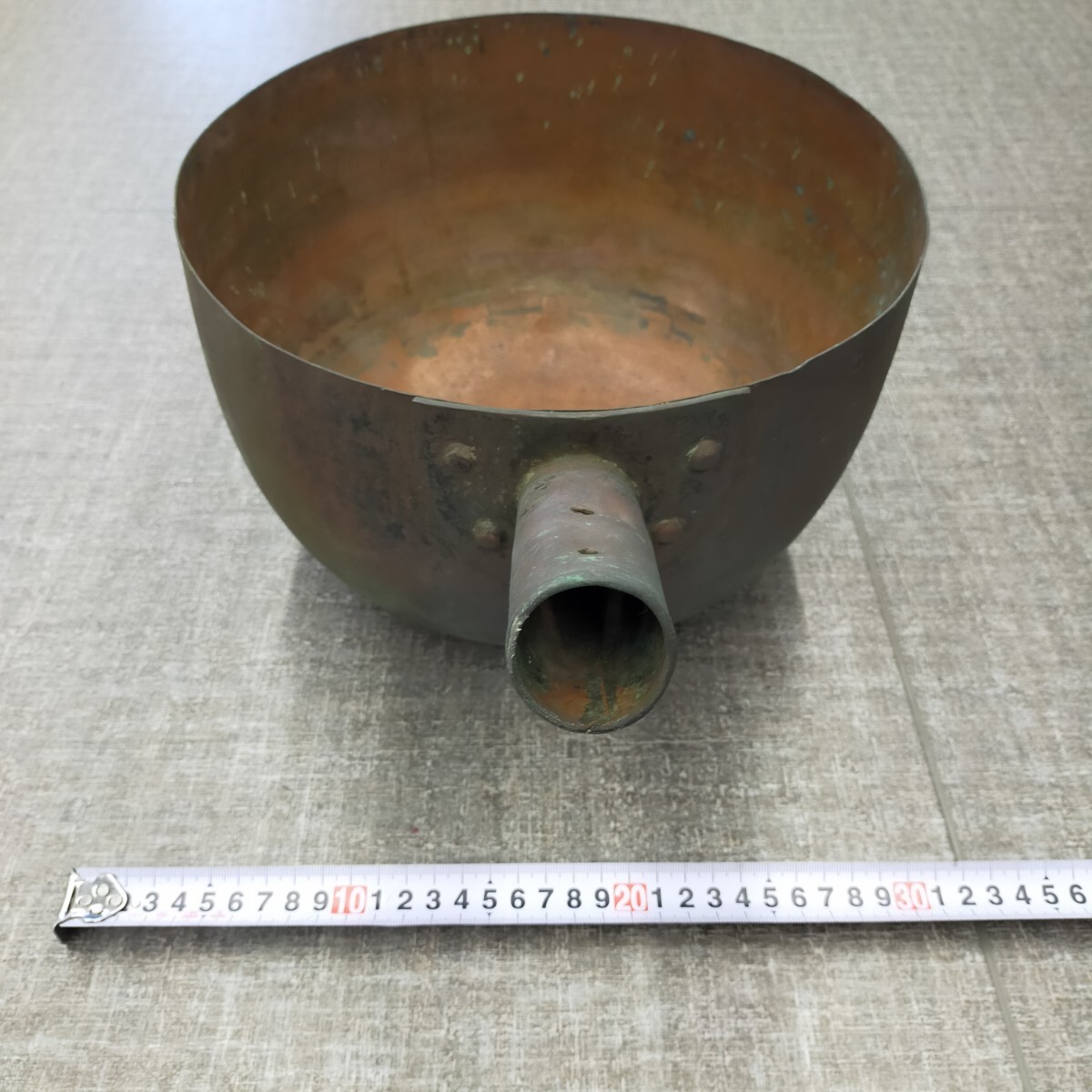 - す3216 片手鍋? 銅製 片口鍋? 大型 約高さ18.5cm×直径28cm 詳細不明 骨董 アンティーク雑貨 レトロ ヴィンテージ 時代物 古道具