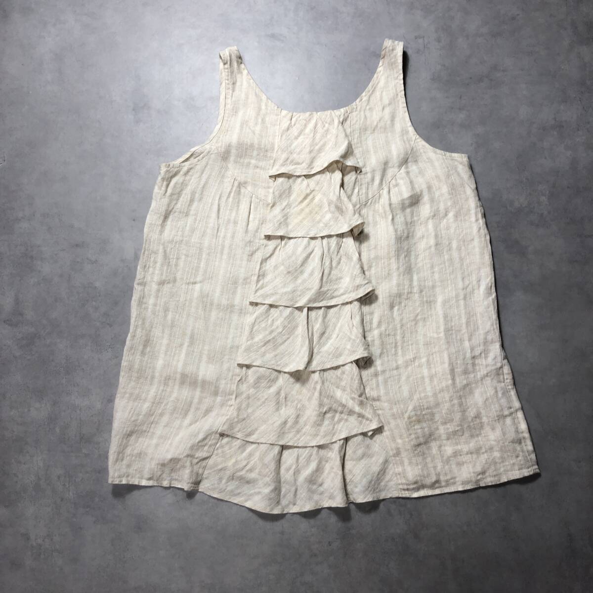 - WQ556●denicher:フロントティアードリネンノースリーブブラウス 生成り 麻シャツ デニシェ スティルフラン