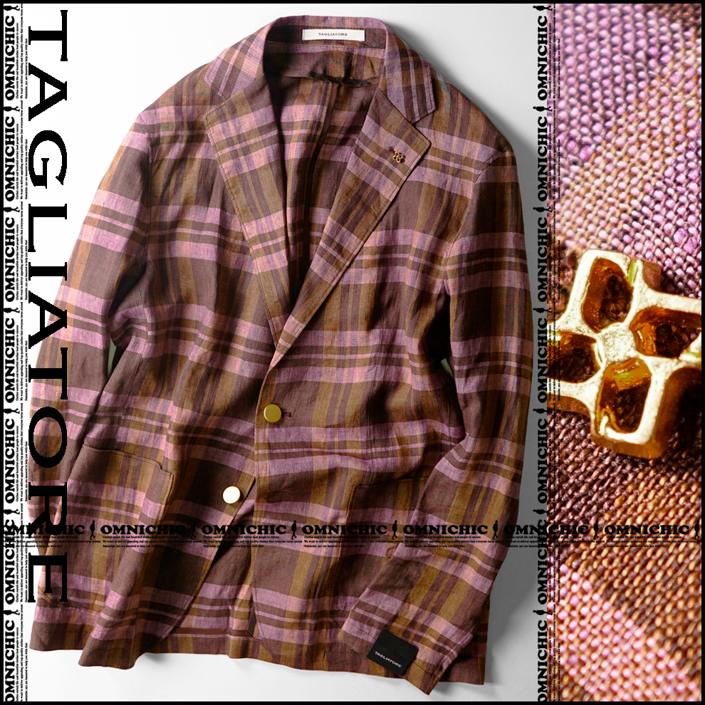 - BEAMS取り扱いモデル■新品23春夏【TAGLIATORE】タリアトーレ色気漂う麻100%/極上G-LIGHT/金釦リネンチェックテーラードジャケット48/M