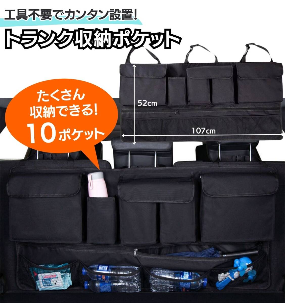 - #453 車用 トランク収納ポケット 大容量 10ポケット 工具不要 簡単設置 後部座席収納バッグ メッシュポケット 傘 小物整理 ペット用品