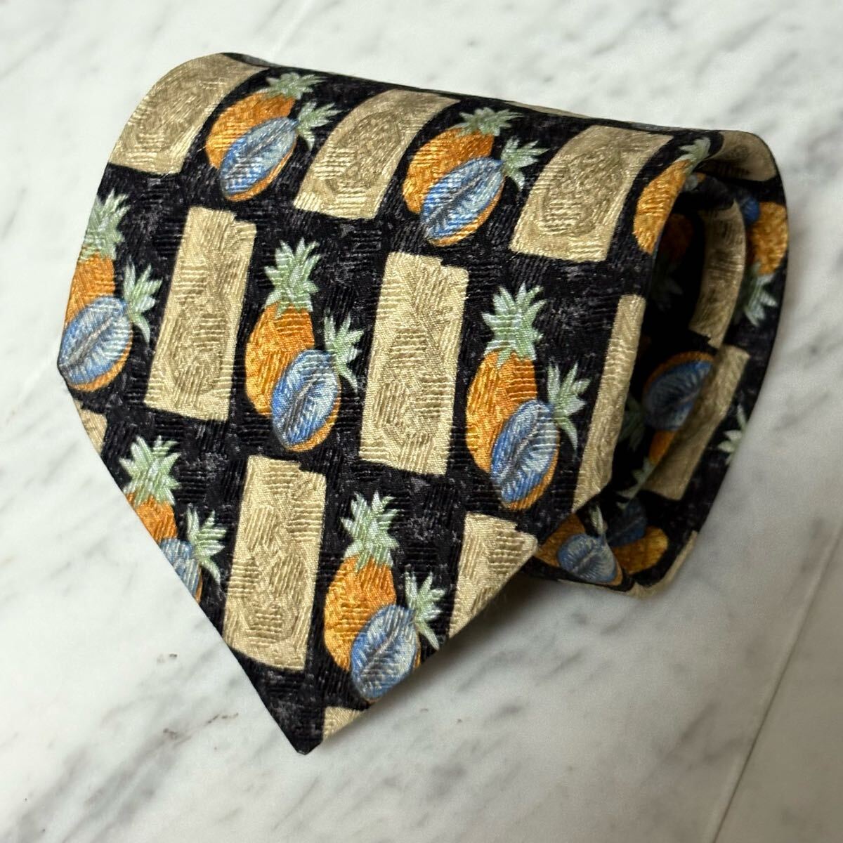 - 【美品】 999円~ GIVENCHY ネクタイ ブラック系 果物柄 (GB3)