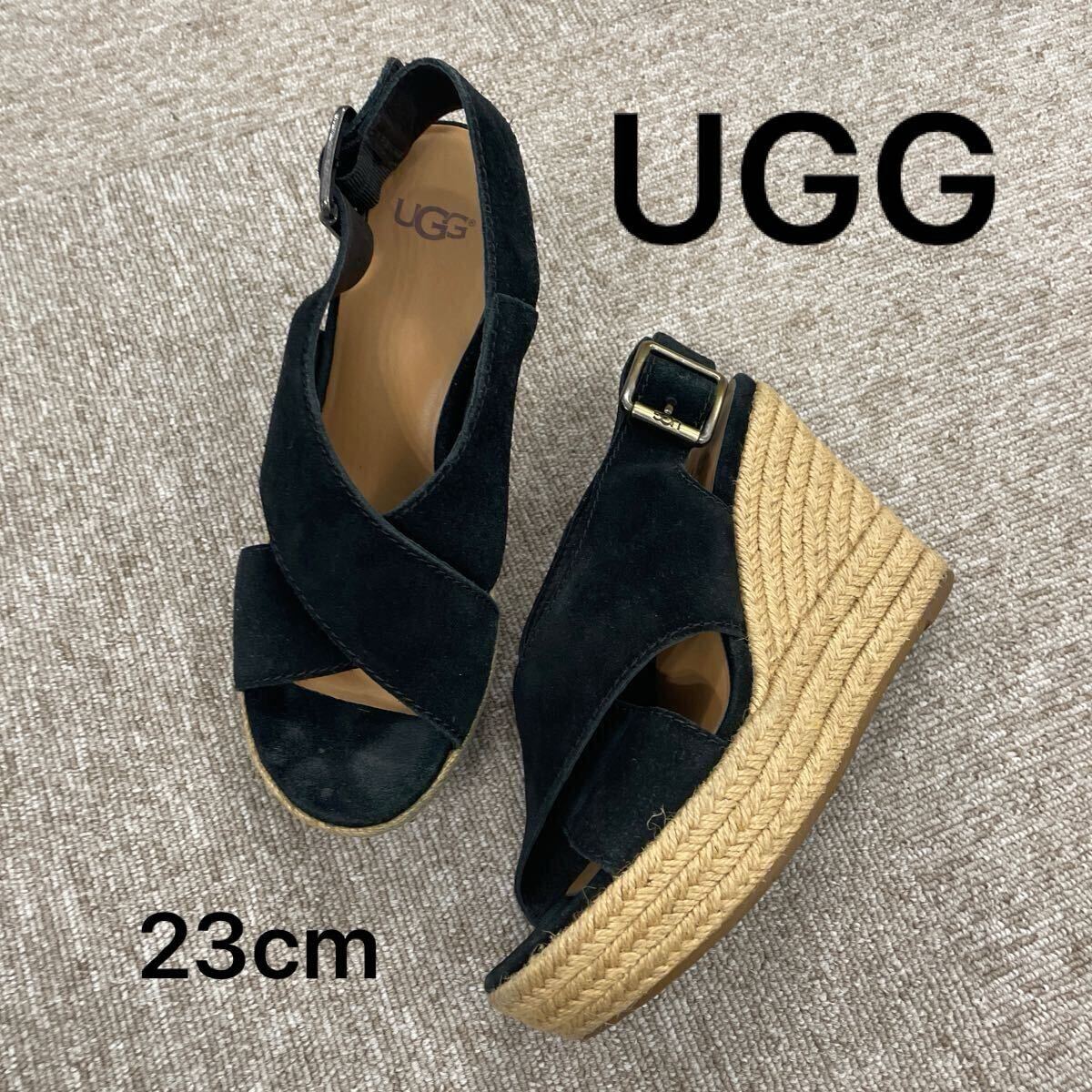 > 【546】アグ UGG ウェッジソール サンダル USA6 23cm UK4 黒 厚底 スウェードサンダル スエード