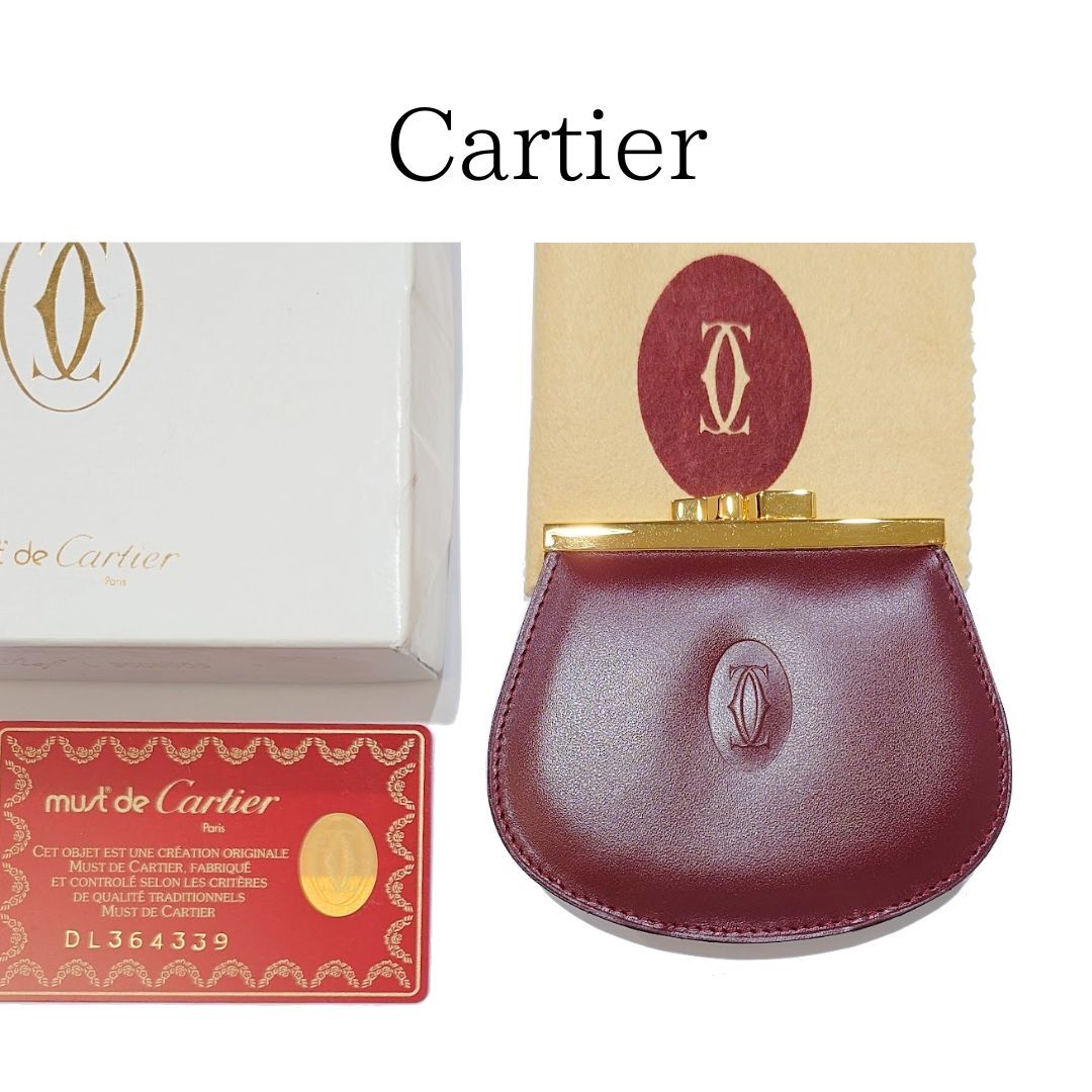 - 【ほぼ未使用】鑑定済 Cartier カルティエ マストライン がま口 コインケース 小銭入れ ボルドー レザー L3000009 ヴィンテージ