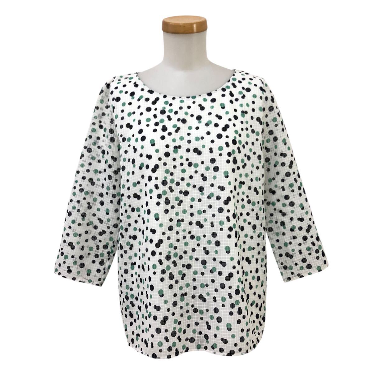 - Nm314-20 美品 LAUTREAMONT ロートレアモン ドット柄 七分袖 ブラウス シャツ カットソー トップス ホワイト系 レディース 40