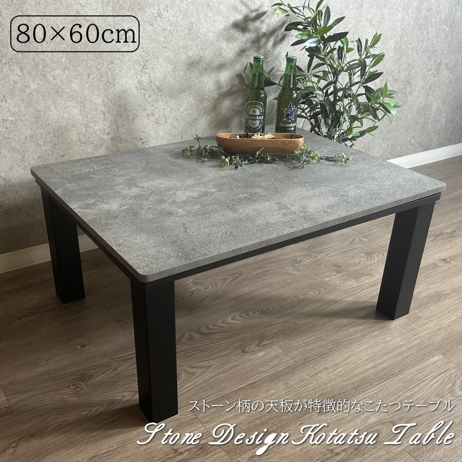 > こたつテーブル 速暖 80×60cm ストーングレー おしゃれ 石英管ヒーター ローテーブル 1人 2人 家具調 送料無料(一部除)新品未使用 62B1