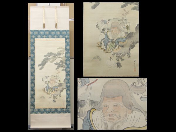 - 【心庵】掛軸 岸連山 絹本 寿老人図/肉筆 付箱 師:岸駒 B337