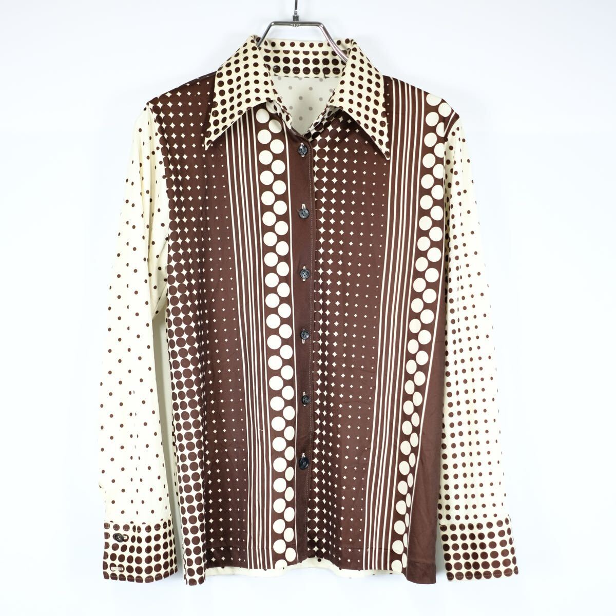 - 1970s ビンテージ 総柄 ポリシャツ 海外仕入れ ドット モダン 古着屋 長袖シャツ トップス デザイン アート 昭和