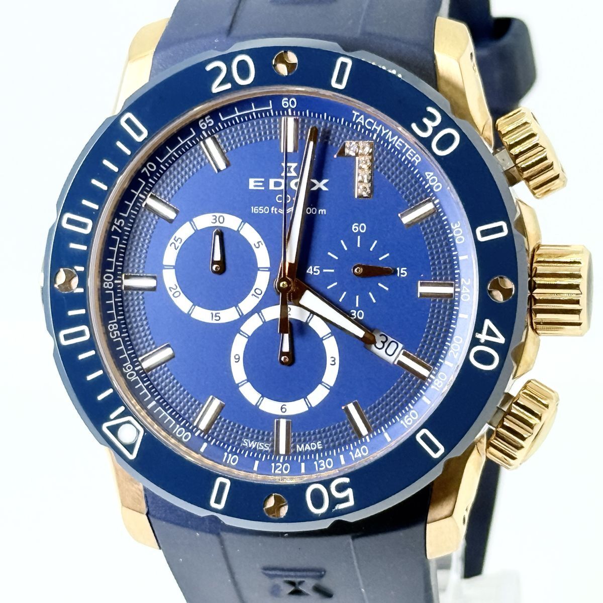 > T6652 EDOX エドックス クロノオフショア1 クロノグラフ AJHH リミテッドエディション 創業135年記念モデル ブルーラバーベルト クォーツ