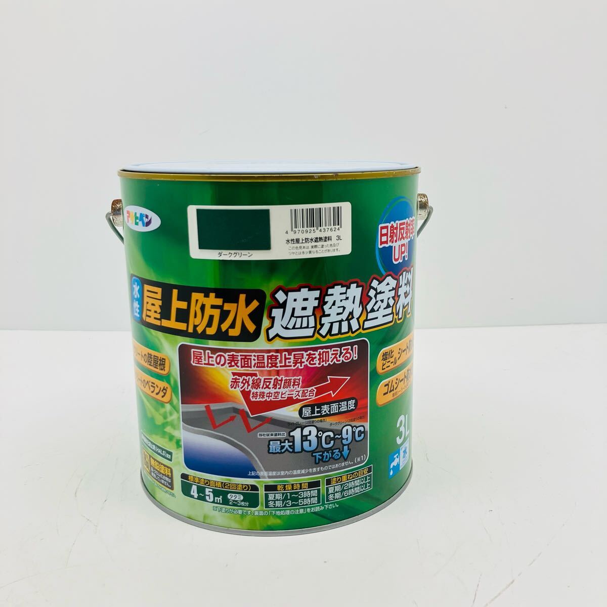 > ★N 未使用 アサヒペン 遮熱塗料 【ダークグリーン】 水性 屋上防水 無鉛塗料 塗料 表面温度上昇を抑える 3L N-244