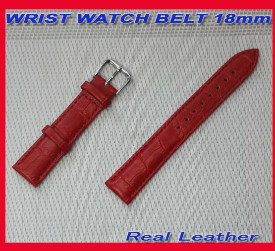 - ★本牛革!腕時計ベルト 交換用ベルト/クロコ型/幅18mm新品即決!赤 レッド♪クロコ調!高級タイプ