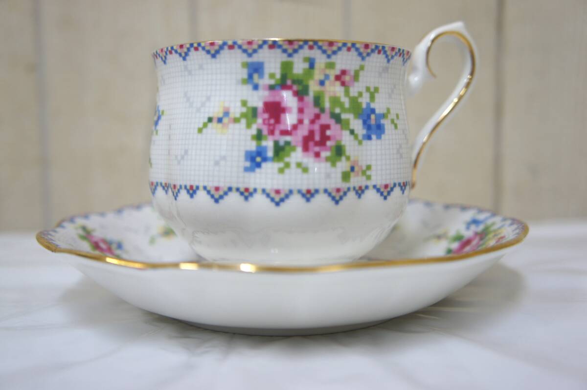 - 新古品☆ROYAL ALBERT☆ロイヤルアルバート☆ししゅう柄☆カップ&ソーサーセット☆507S4ー17698