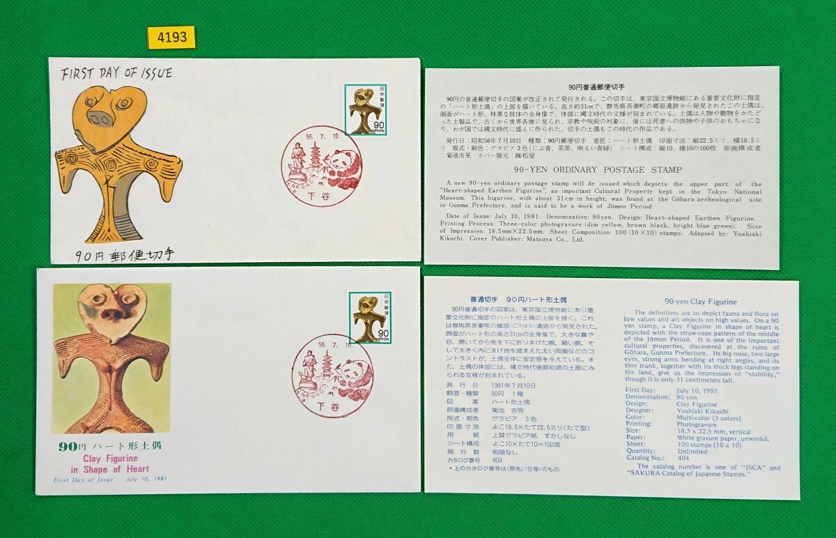 - FDC/普通切手/花・貝・文化財/ハート形土偶/2種/初日印/下谷風景印/松屋版/NCC版/解説書有り/1981年7月10日/初日カバー/№4193