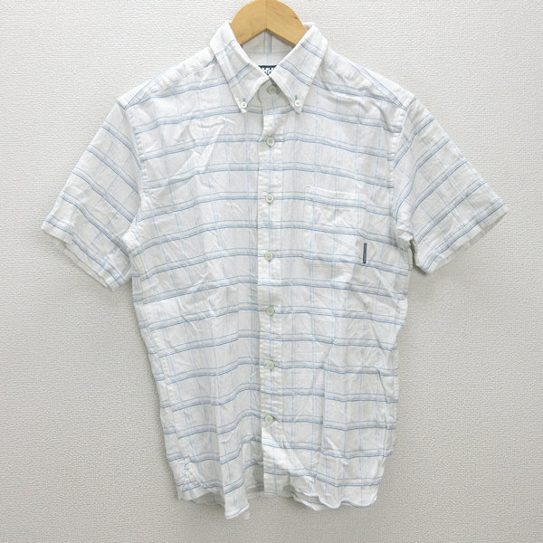 - G■ヘリーハンセン/HELLY HANSEN 半袖BDシャツ/チェック柄【L】白青/men's/117【中古】■