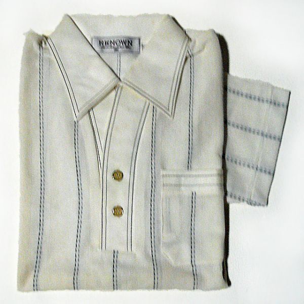 - 半袖シャツ M 白グレー縦縞 メッシュ 夏 メンズシャツ 紳士 (17)
