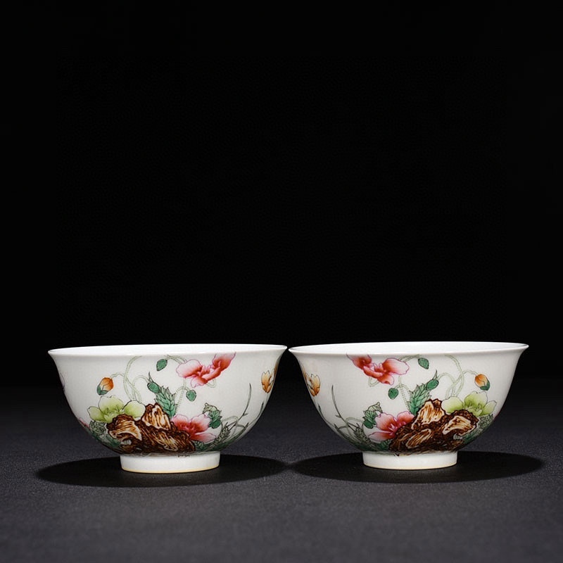 - ■TM160■大清乾隆年制銘 琺瑯彩 虞美人花卉紋 碗2客 時代物 古玩 唐物 古陶磁器■