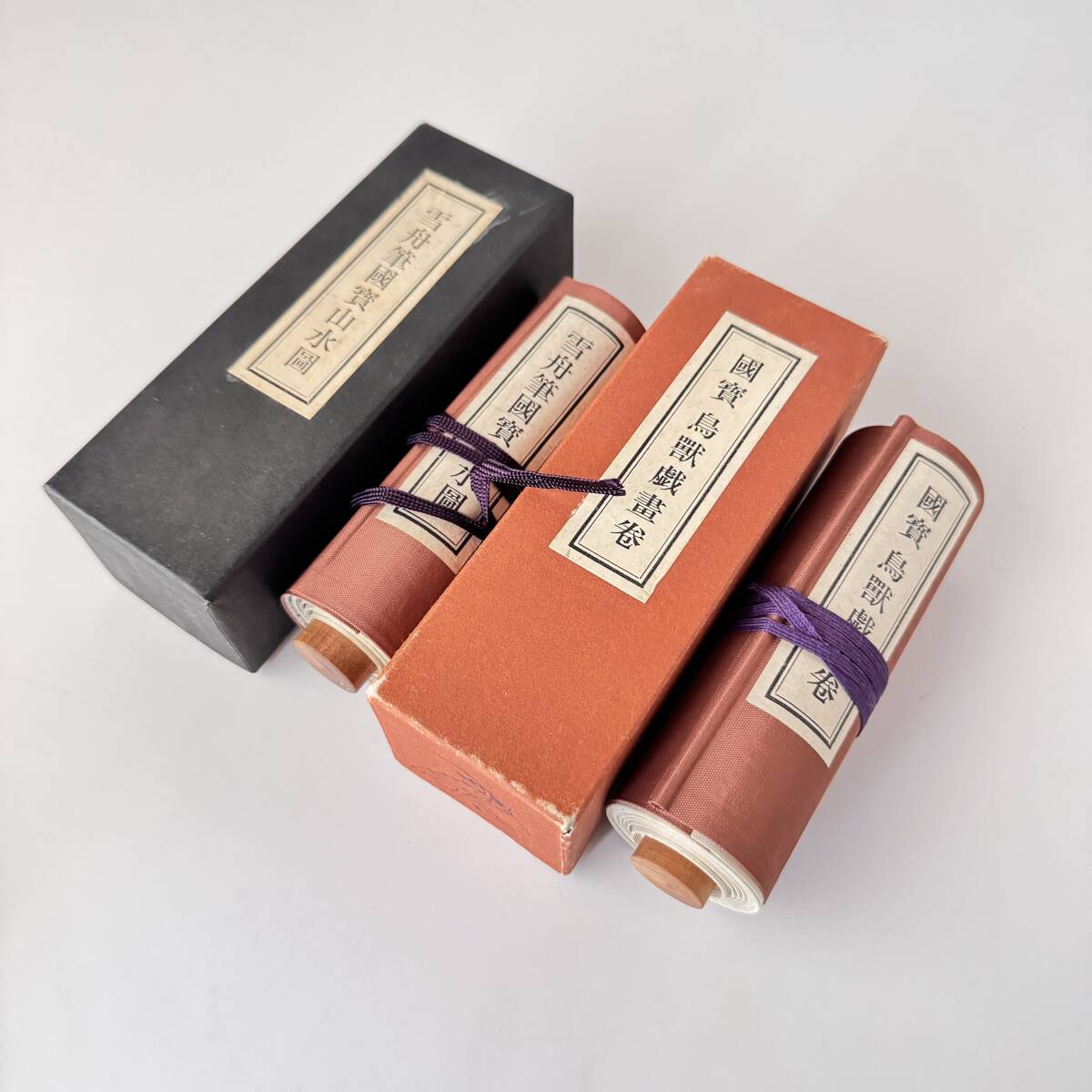 - 【63148Q】便利堂発行 雪舟筆國寶山水図 國寶鳥獣戯画巻 縮小絵巻物 2点まとめて 経年保管品 現状品