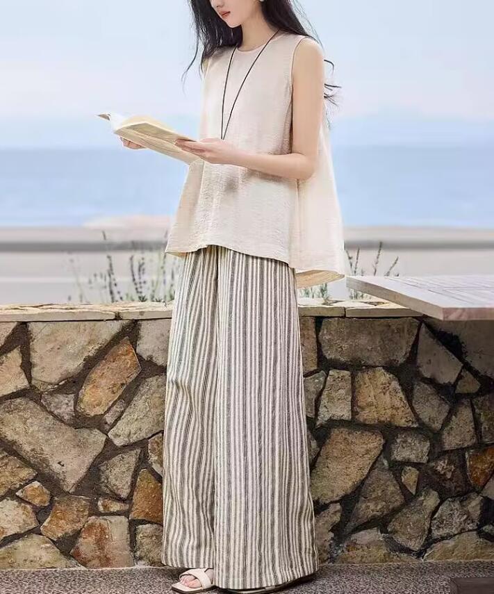 - 新入荷*セットアップ レディース カジュアル 夏 ノースリーブ ブラウス ワイドパンツ 薄手 上下セット 2点セット ロングパンツ