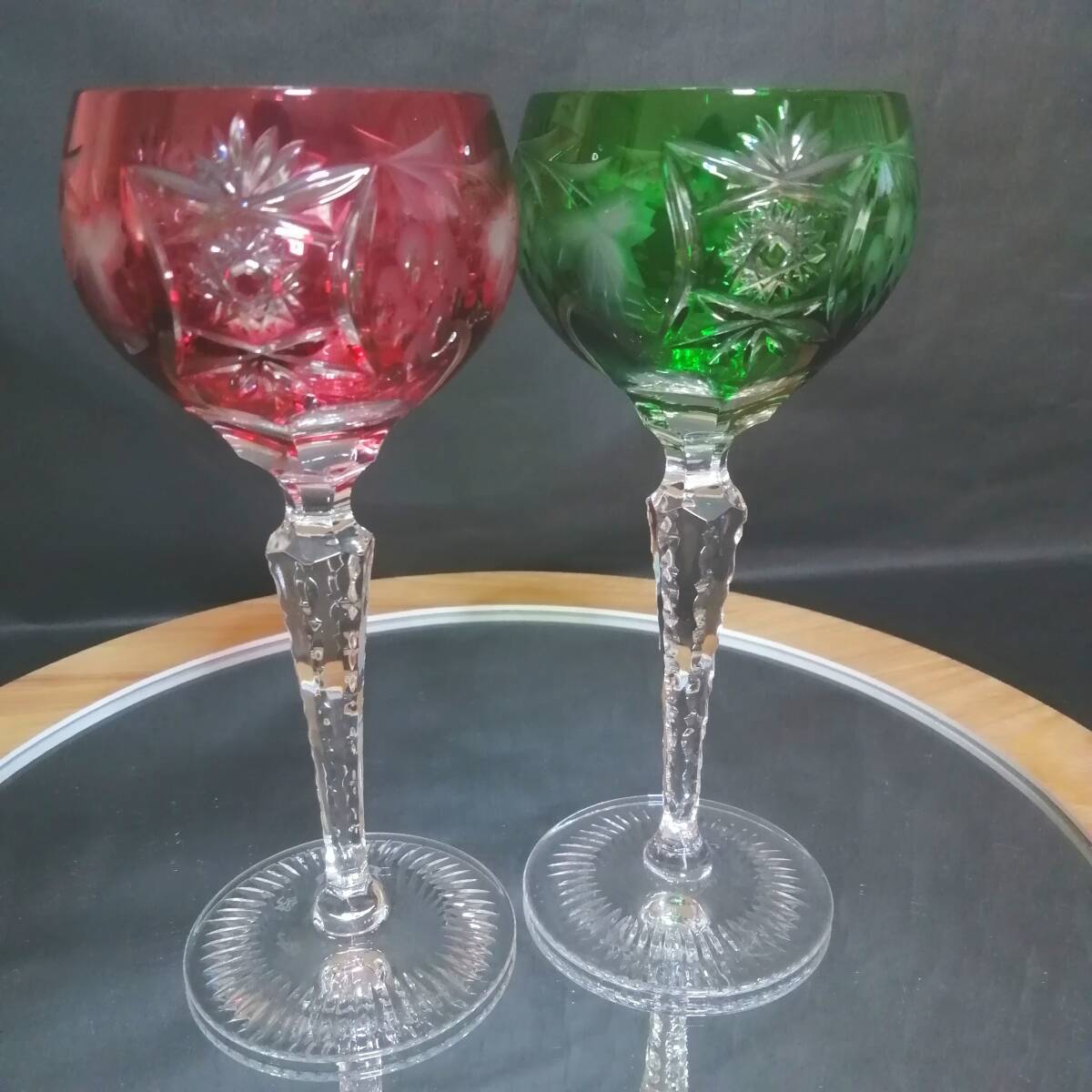 - 未使用◇自宅保管 ナハトマン 色被せ ワインレッド グリーン ペア グラス
