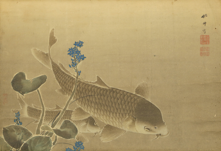 - 【真作】掛軸「小畑稲升 鯉魚図」幕末明治 絵師 鳥取藩最後の藩絵師 動物画 絵画 中林竹洞門下