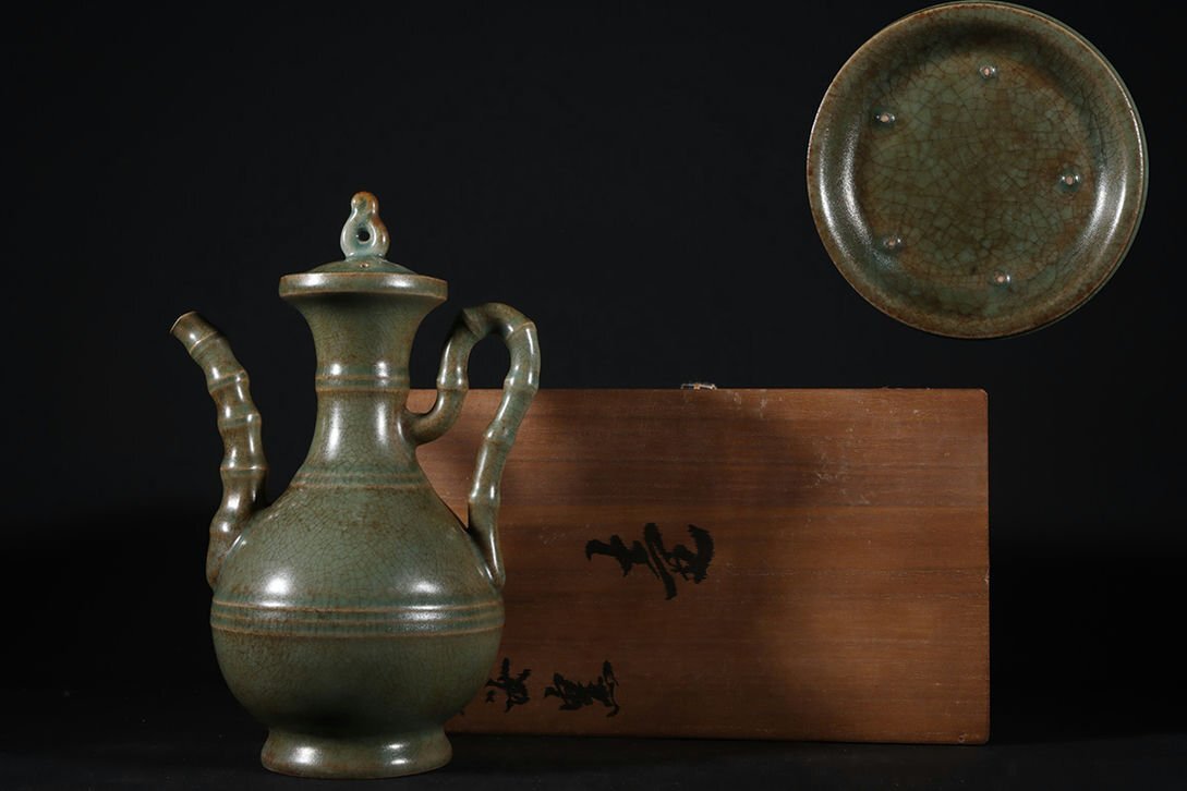 - ◆羽彰・古美術◆Y4999宋代 汝窯天青釉執壺・古陶磁器 ・珍品旧蔵・古賞物・時代物