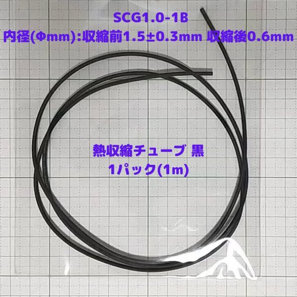 > 熱収縮チューブ 黒 SCG1.0-1B 内径(Φmm):収縮前1.5±0.3mm 収縮後0.6mm 1パック(1m)