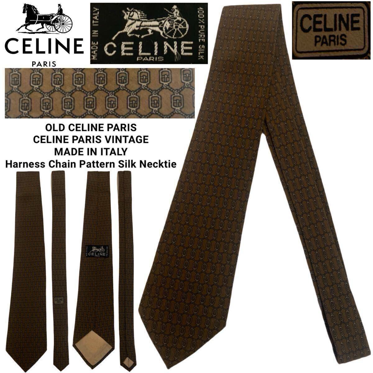 - OLD CELINE オールドセリーヌ CELINE PARIS VINTAGE セリーヌ パリス ヴィンテージ MADE IN ITALY 馬具Chain柄 シルクネクタイ アーカイブ