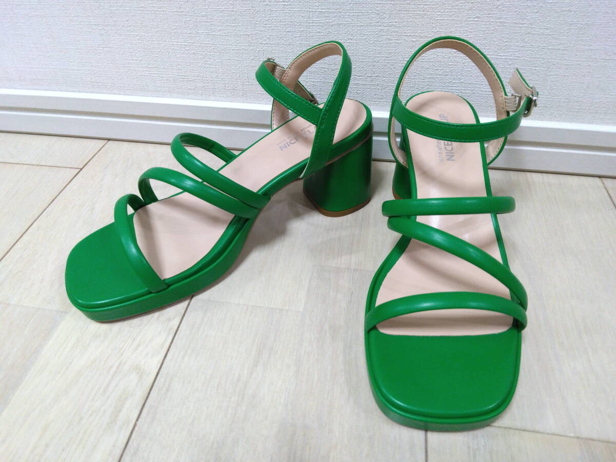 - 【美品】one after another NICE CLAUP ナイスクラップ*ヒールサンダル*グリーン*Sサイズ/ヒール7.5cm*