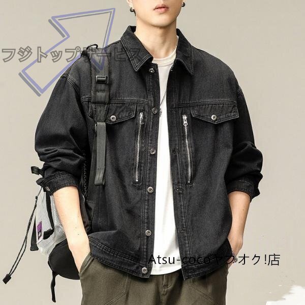 - M ブラック Gジャン ジャケット gジャン 大きい デニムシャツジャケット メンズ デニムシャツ アメカジ ストリート