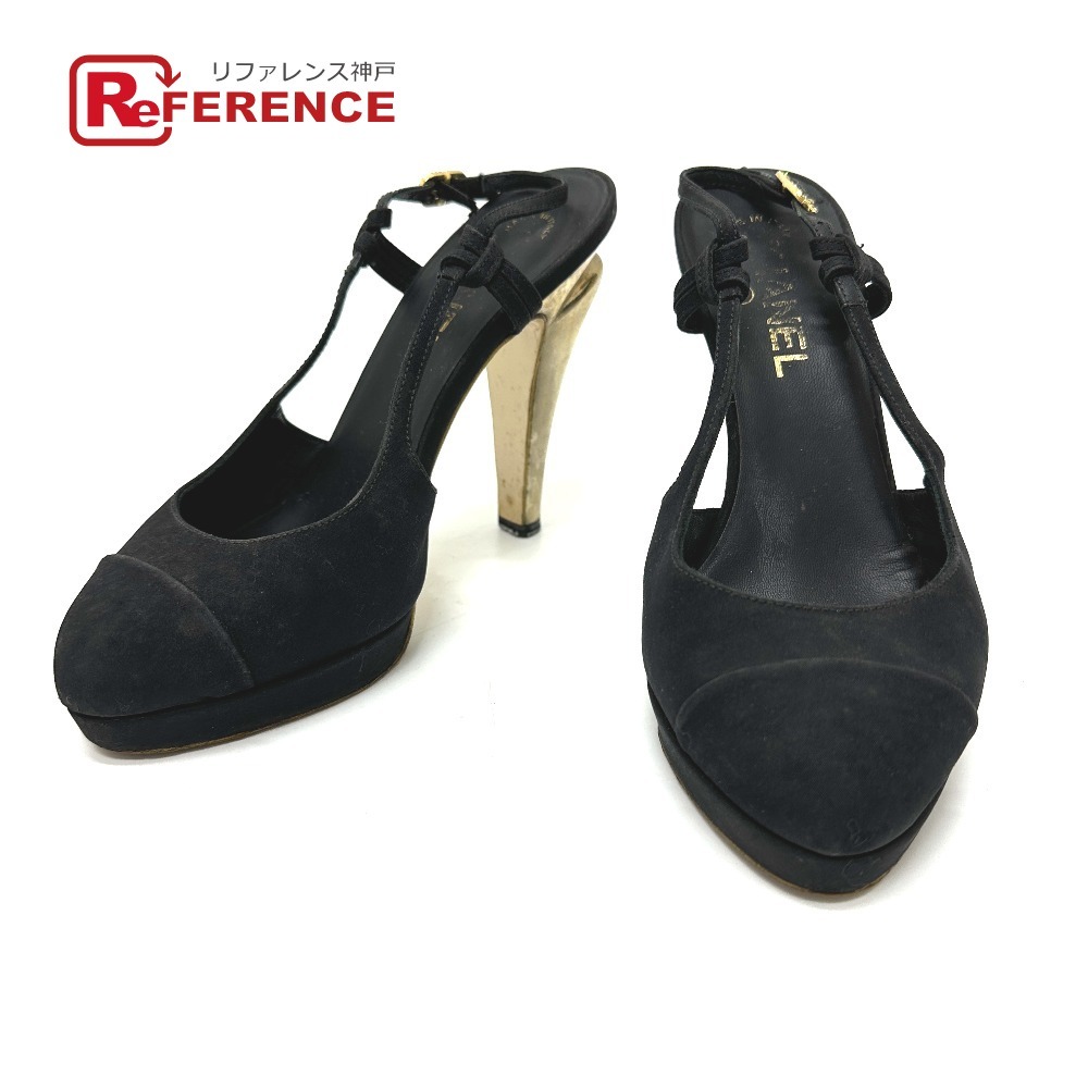 > CHANEL シャネル 靴 ハイヒール ラウンドトゥ バックストラップパンプス ストラップ サンダル ブラック レディース【中古】