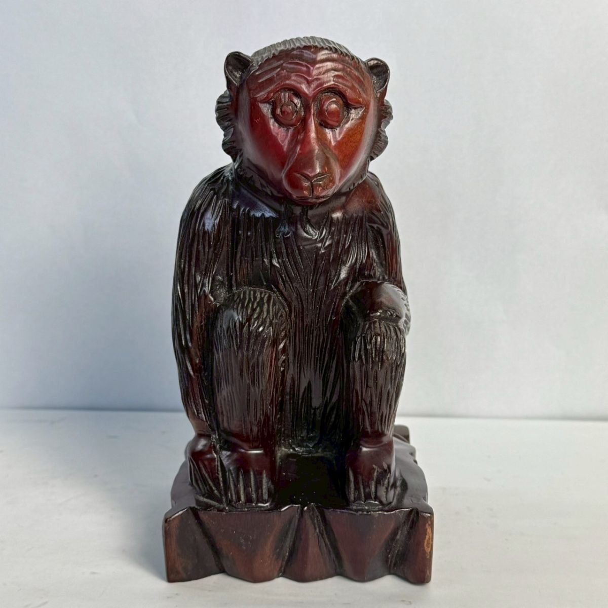 > 置物 猿 サル 紅木色 縁起物 伝統工芸品 古美術 昭和レトロ アンティーク ヴィンテージ 長期保管品 W4q R7728