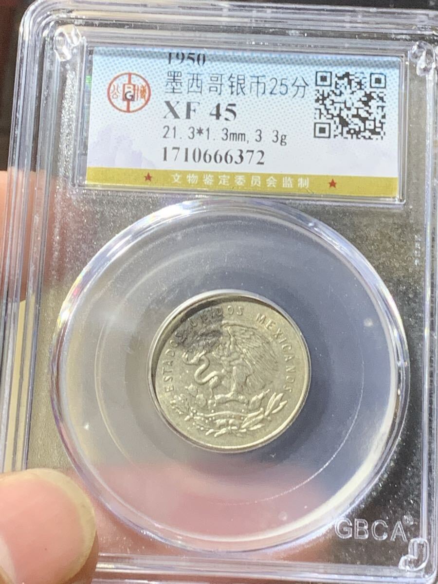 - 1950年 メキシコ 古銭 銀貨 GBCA 鑑定済み XF45 25分銀貨 収蔵品放出