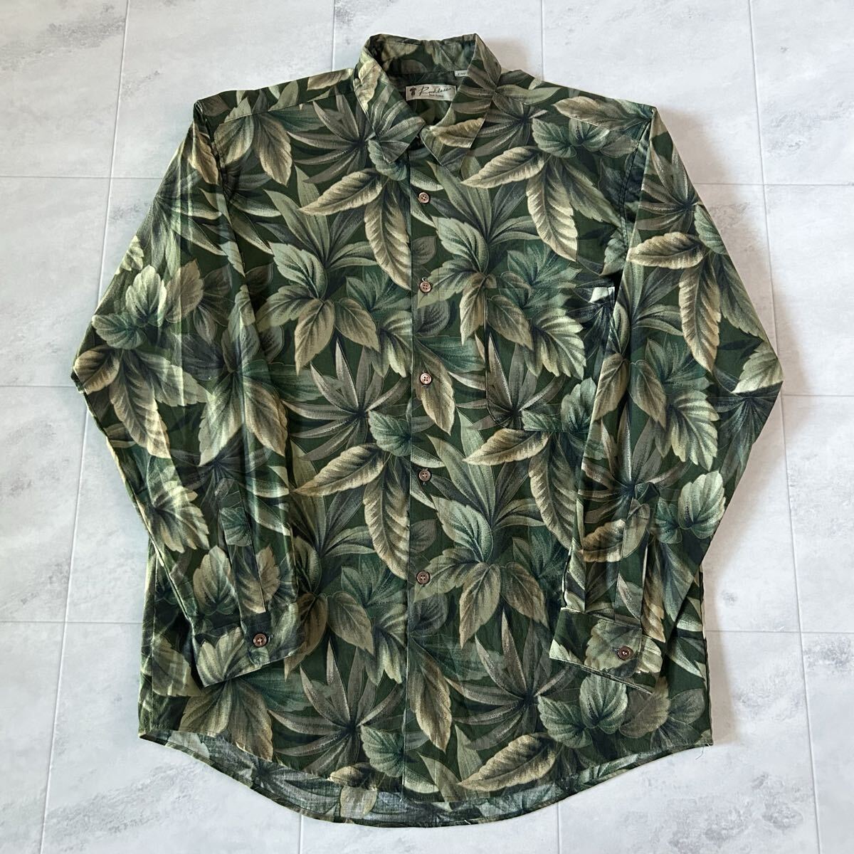 - Reckless 総柄 柄シャツ リーフ レトロ アート ビンテージ 長袖シャツ