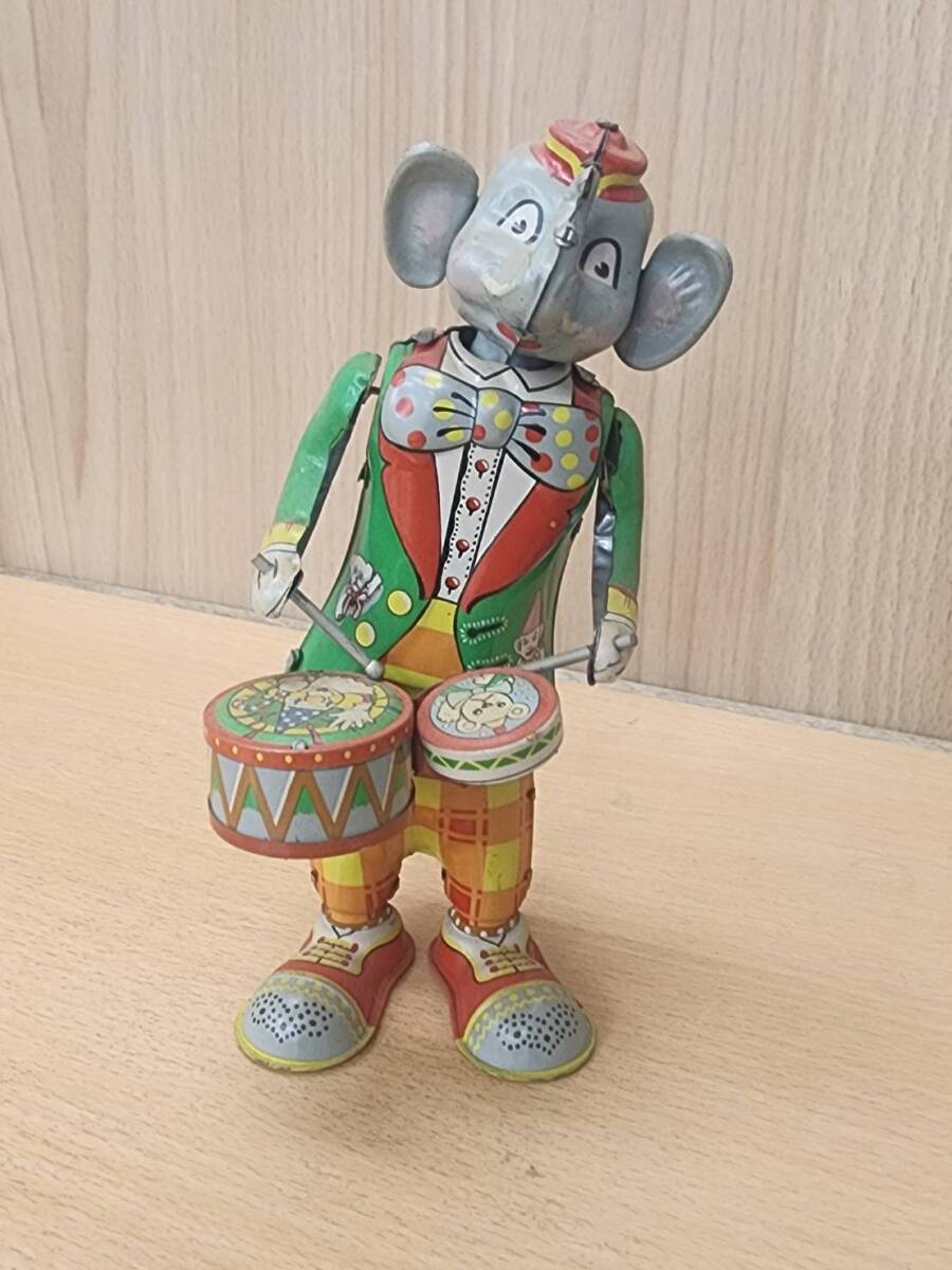 - ★ R70729 T.K TOYS ゾウノタイコタタキ ゼンマイ式 ブリキ ブリキのおもちゃ 日本製 レトロ★